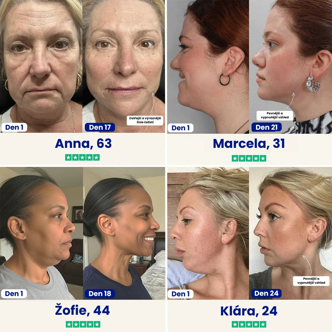 Využijte nejlépe střežené tajemství beauty průmyslu – silnou směs, která aktivuje obnovu pleti, rozpouští odolný tuk pod bradou a vrací zpět kontury čelisti, o nichž jste si mysleli, že jsou pryč navždy.