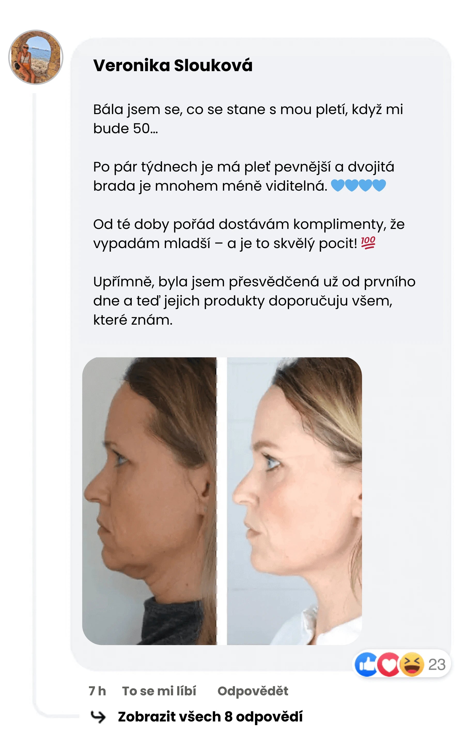 Potvrdilo výrazné zmenšení dvojité brady po 21 dnech