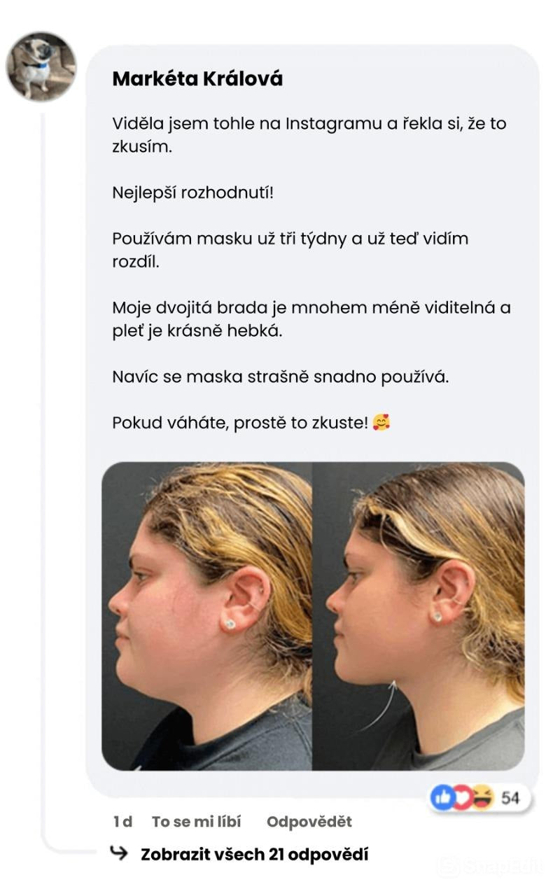 Výsledky se dostaví už po první aplikaci – hladší pleť a snadné a rychlé odstranění dvojité brady!